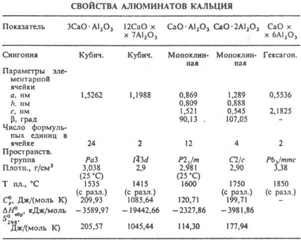 КАЛЬЦИЯ АЛЮМИНАТЫ, двойные оксиды состава тСаО.nАl2О3 (см. табл.).