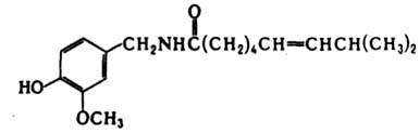 КАПСАИЦИН (ванилиламид 8-метил-6-ноненовой кислоты), мол. м. 305,15; алкалоид. содержащийся в разл. видах стручкового перца Capsicum (напр., в плодах Capsicum Annum окапсаицин 0,03%). Бесцв. кристаллич. вещество со жгучим