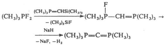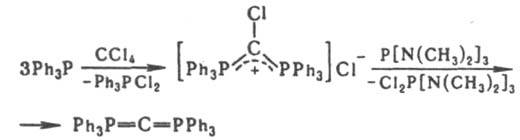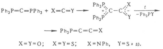 С некоторыми соед. карбодифосфораны образуют бетаины. термолиз которых приводит к соед. с кумулированными двойными связями. например: