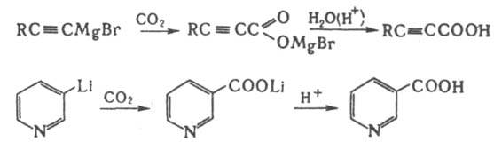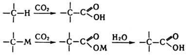 Hаиб. легко карбоксилирование подвергаются металлоорг. соед., среди которых чаще всего используют производные Li и Mg, например.