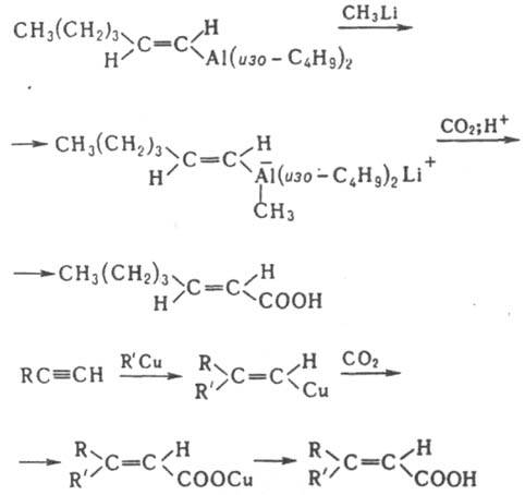 Для синтеза некоторых карбоновых кислот применяют орг. производные Al, Zr, Cu и др., например: