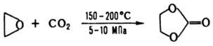 Основной пром. способ синтеза циклич. К. - взаимод. оксиранов с СО2 в присутствии неорг. или орг. галогенидов, например: