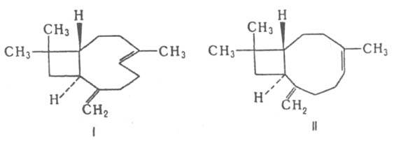 КАРИОФИЛЛЕН, мол. м. 204,36. Существует в виде двух изомеров. Собственно кариофиллен (ф-ла I) - бесцв. маслянистая