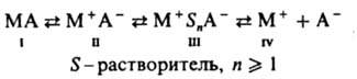 В общем виде для активного центра катионной полимеризации можно представить ряд состояний от ковалентного (I) до своб. ионов (IV); промежут. состояния - контактная ионная пара (II) и сольватно разделенная ионная пара (III):