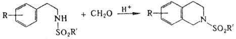Модификация П.-Ш.р.-циклизация N-сульфонилфенил-этиламинов в тетрагидроизохинолины в присутствии кислых катализаторов.